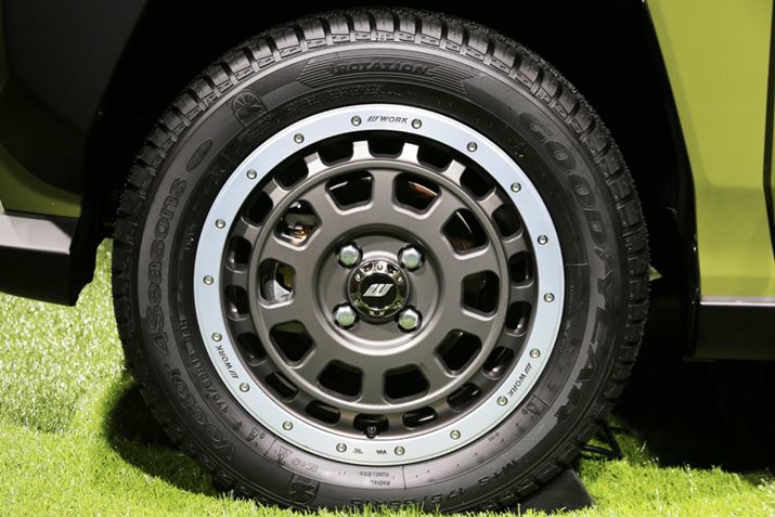 ホイールはWORK製で、タイヤはグッドイヤーのオールシーズンタイヤ「ベクター フォーシーズンズ」が装着されていた