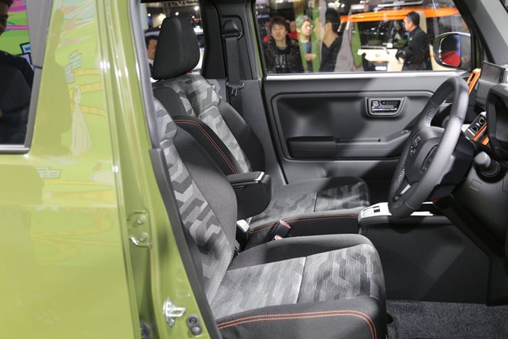 新型「タフトコンセプト」のフロントシートとリアシートは、それぞれカラーやデザインなどが異なっているのが特徴的だ
