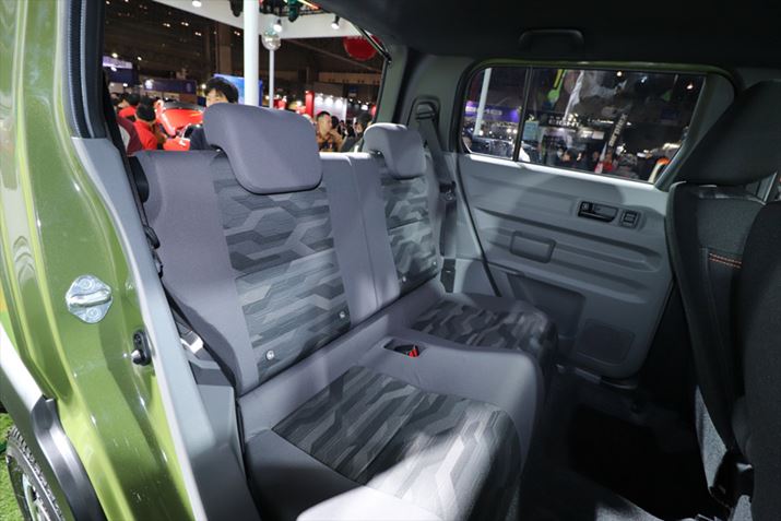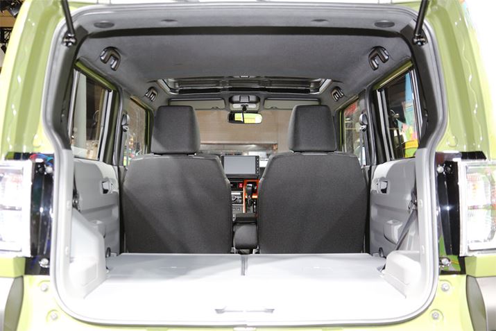 また、新型タフトコンセプトの室内は、前席と後席を区別してデザインされている。「前席はしっかりと運転に集中させ、後席は使い倒せる荷室のようになっています。当然ながら、荷室はきちんとフラットになるようにしました」と、使い勝手も忘れていない。