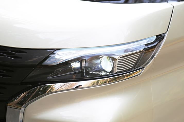 フロントフェイス周りで特筆したいのが、ヘッドライトだ。eKクロスやデリカD:5のヘッドライトの搭載位置は少し変わっていて、フロントグリルの左右にある縦長のランプ内に収められている。だが、新型eKクロススペースのヘッドライトは、フロントフェイス上部の一般的な位置へと戻されている。この点について、新型eKクロススペースの開発者は「『アダプティブLEDヘッドライト』を採用するため、ヘッドライトの位置を戻しました」と話す。