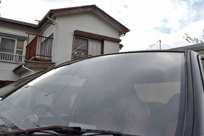 放置していた愛車のフロントガラス。怠慢により黒い点状の汚れが大量にこびりついており、慚愧に堪えません