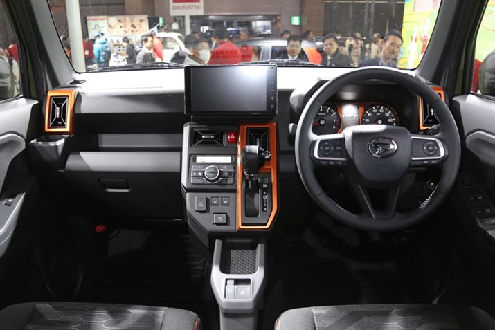 ダイハツ「タフト」のインパネは「タント」とは異なるデザインで、タフさを想起させるような独自のものが採用されている