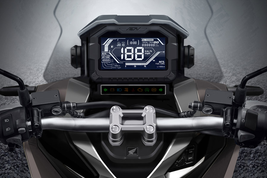外観イメージは、同じアドベンチャー系スクーター「X-ADV」のもの踏襲。排気量が大きい分、車体サイズも2,230(全長)×910(全幅)×1,345(全高)mmと大きいが、ADV150はX-ADVと変わらないほどの存在感がある