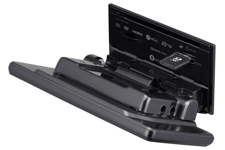 DVDやSDカードなどのメディア挿入口はディスプレイの裏側に設けられており、ディスプレイを手前に倒すことでメディアをセットすることができる