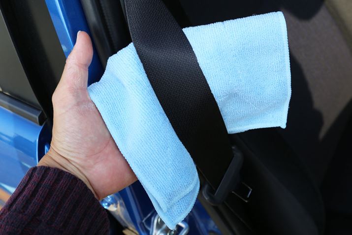 シートベルトは、運転しないときには巻き取られているため、掃除の際には意外と気付きにくい部分なのです。シートベルトはバックル部分だけでなく、ベルト部分も手で触れることが多いので、巻き取られているシートベルトを引き出して拭いてあげましょう。また、「シートアジャスター」などもクルマへ乗り込んでしまうと脇にあって見つけにくく、見落としがちな個所のひとつになります。