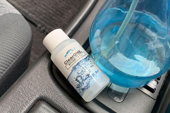 CARZOOT「クリアワン」は、主成分がドクターデオと同じ安定化二酸化塩素の液剤です。原液なので、15倍程度に薄めて使います。スプレーボトルに入れて水道水を注げば完成です。コスパが非常にいい製品と言えるでしょう。