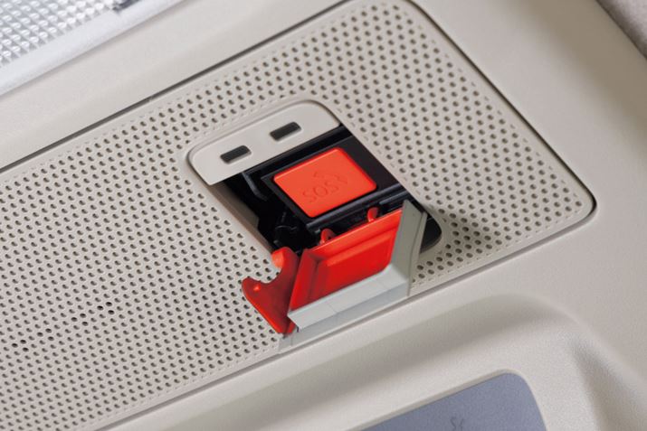 日産「ルークス」の運転席の頭上に備えられている「SOSコール」ボタン。万が一の事故などの際に、押すことでオペレーターとつながって助けを呼ぶことができる