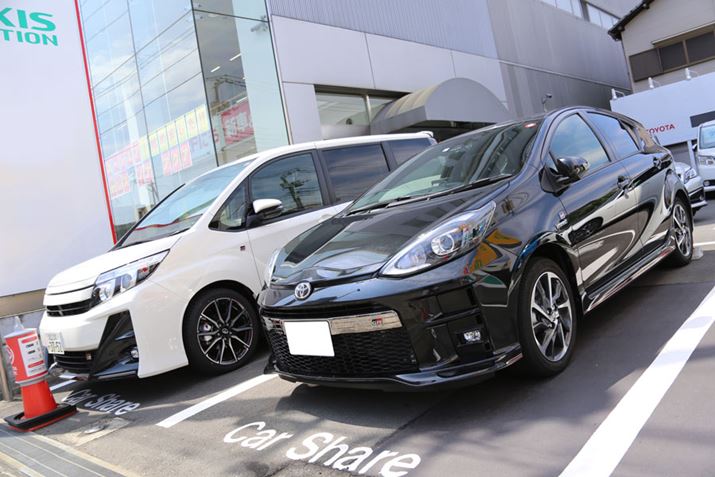 また、トヨタシェアで借りることのできる車種ラインアップは、すべてトヨタ車であることも特徴のひとつです。コンパクトカーなら「アクア」や「ヴィッツ」、ミニバンなら「ノア」、「ヴォクシー」などが多いのですが、いま人気の新型「ヤリス」の配備も徐々に拡大してきています。また、配車数は少ないのですが、トヨタのスポーツカー部門である「GR」が手がけた「GR SPORT」車両も、一部の店舗で借りることができます。後述しますが、今回は「アクア GR SPORT」を実際に借りています。