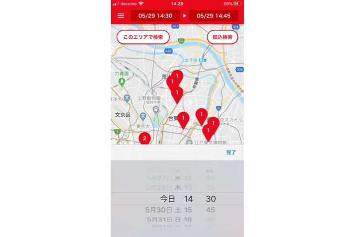 借りた車両を返却する場合には、クルマを止めてドアを閉め、アプリから「返却手続きを開始する」を押せば、すぐに施錠されて返却完了となります。