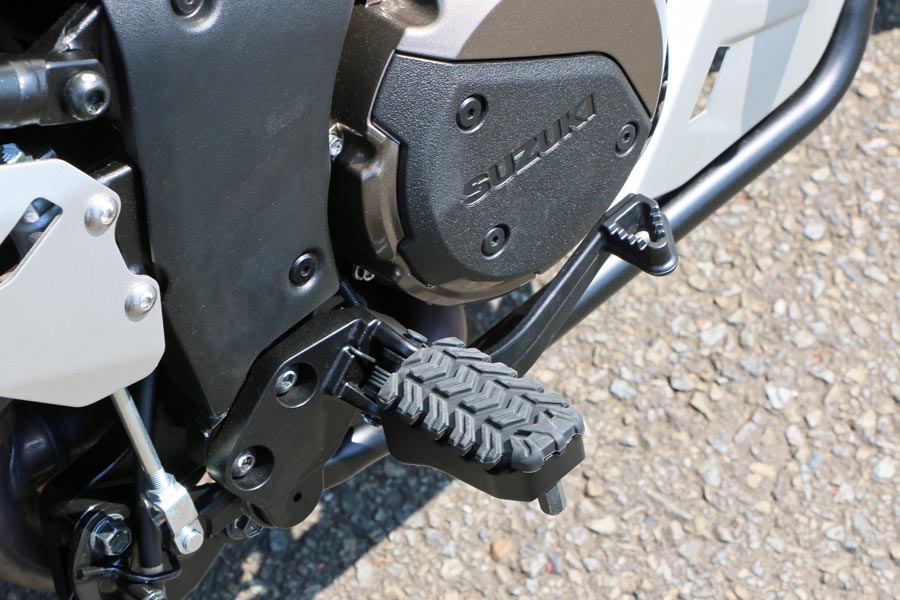 アドベンチャーバイクは車体が大きいわりに細めのタイヤが装備されていることが多く、Vストローム1050/XTもフロントが110、リアが150となっており、コーナーリングなどでの倒し込みの操作は軽快。それでいてタイヤ径が大きいため、安定感も高い。装備されているタイヤは温度依存性が低いので、寒い時期の走り出しにも気を使わずに済みそうだ。このあたりも、近年アドベンチャーバイクの人気が高まっている要因なのかもしれない。