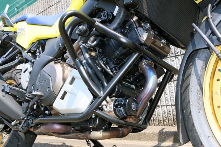 Vストローム1050/XTに搭載されているVツインエンジンは、パワーを上げるためにスロット径が従来モデルより5mm大きくなっているが、それだけでは低回転域でのコントロールはしづらくなる。スロットルの開度を電子制御化することにより。乗り手が大きくアクセルをひねっても電子制御によってスロットルの開度が常に適正に保たれ、回転のグズつきが防げるようになるのだ。