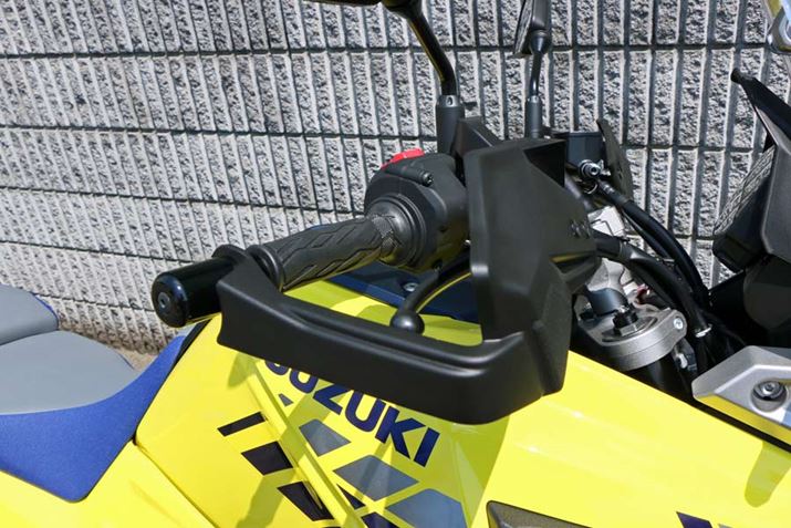 ナックルガードも「XT」にしか備えられていない。転倒時などに手を保護するだけでなく、高速走行時に手に風が当たらないので寒い季節にも役立つ