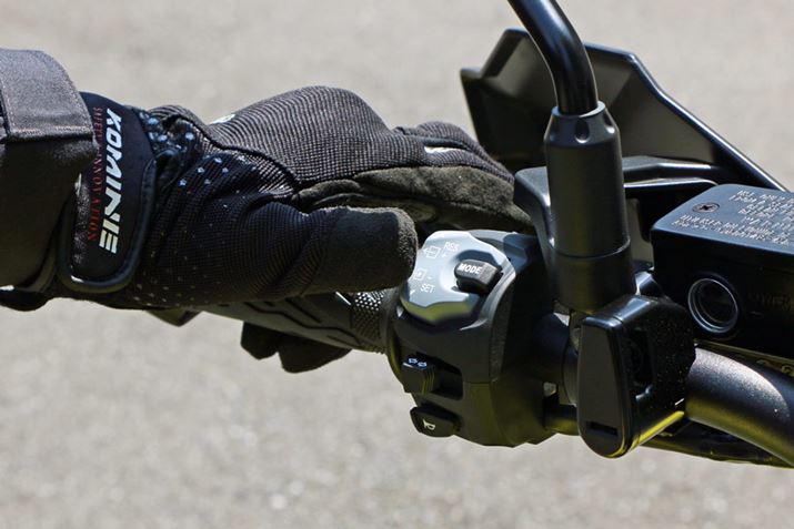 走行モードだけでなく、ラクションコントロールの切り替えや、ABSの介入度合いの調整も、左手側の「MODE」ボタンと上下キーで操作可能