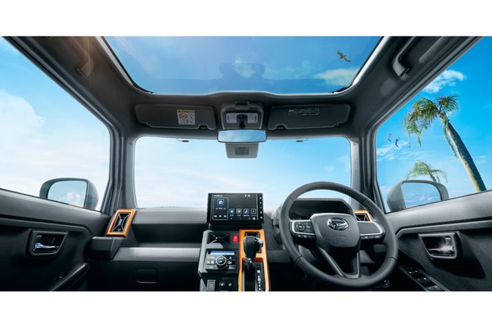 タフトには「スカイフィールトップ」と呼ばれる、最近の国産車にはめずらしいガラスルーフが、全グレードに標準装備されている