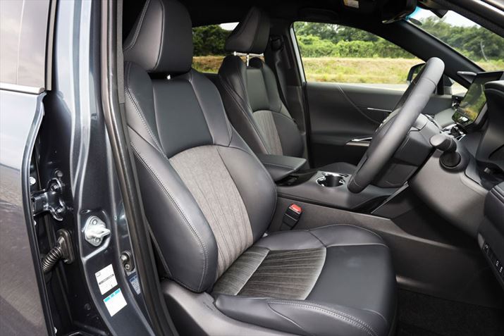 次に、インテリアを見てみましょう。今回の試乗グレードは、ハイブリッドの「Z」というグレードです。シートは、合成皮革とファブリックのコンビネーションで、運転席はフル電動シートになっています。そして、センターコンソールやドアトリムのアームレスト、ダッシュボードの一部など、肌が触れると思われる部分にも、シートと同素材の合成皮革が使われています。