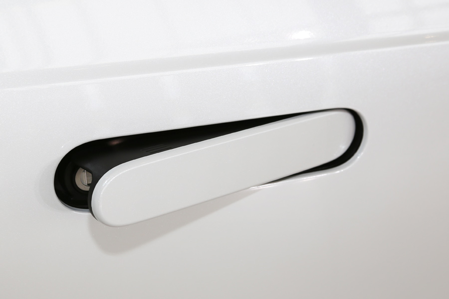 ボディに内蔵されている、フラットな「アウタードアハンドル」。キーを持って近づくと、自動でポップアップされる仕組みだ