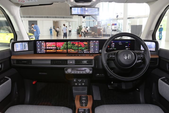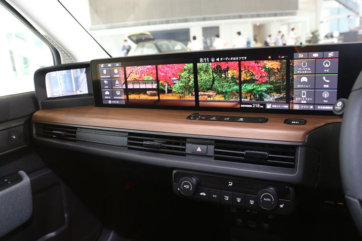 インパネには、サイドミラーに相当するディスプレイを含めて、5つの液晶画面が並んでいる。助手席前にある「ワイドスクリーン Honda CONNECTディスプレイ」には、カーナビやオーディオ、音声アシスタントなどさまざまな情報を分割表示できる。