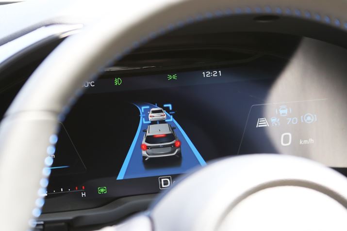「渋滞時ハンズオフアシスト」は、0km/hで停止しても前車を捕捉し続けるので、ブレーキを踏む必要がない。また、発進時にはステアリングのボタンなどを押すなどの操作をする必要がなく、前車が発進すれば自動で追従していく