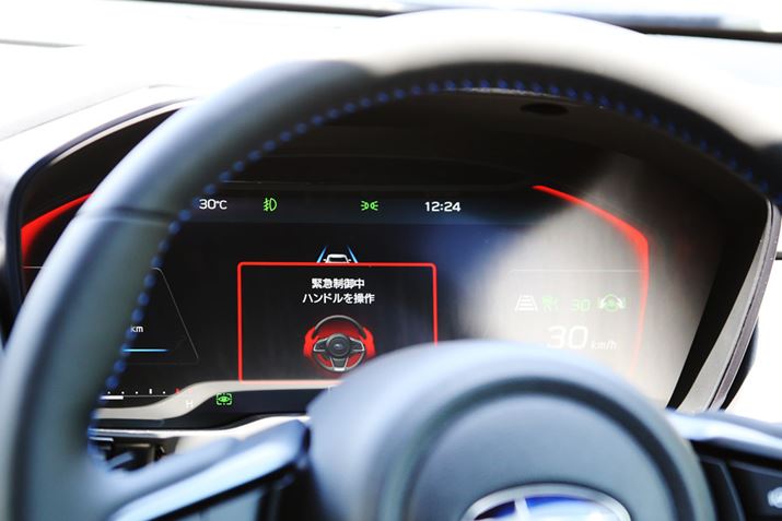 また、アイサイトXには「ドライバーモニタリングシステム」も装備されている。手離し運転の際に、よそ見などをしていると警告が表示される。それでもドライバーが前方を見ない場合には、意識を失うなどの緊急事態が発生したと判断し、ハザードランプを作動させてクラクションを断続的に鳴らしながら速度を下げていく機能が備わっている。なお、コネクティッドサービス装着車には緊急時にオペレーターに発信する「SOSコール」機能もあるので、ドライバーモニタリングシステムと連動させると効果的だ。異常時には、自動的に通信機能を起動させ、かつドライバーの様子も映像で伝えてくれるので、安全性がさらに高まる。