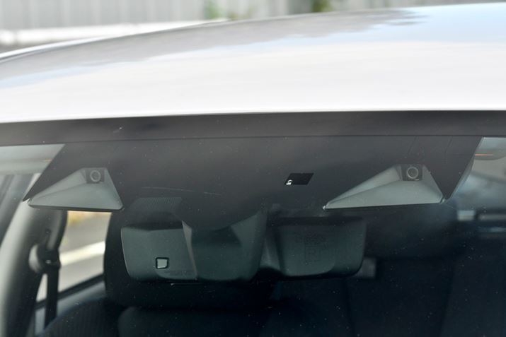 新型「レヴォーグ」のステレオカメラは広角になり、前側方にレーダーセンサーが採用されるなど、安全性はさらに向上している