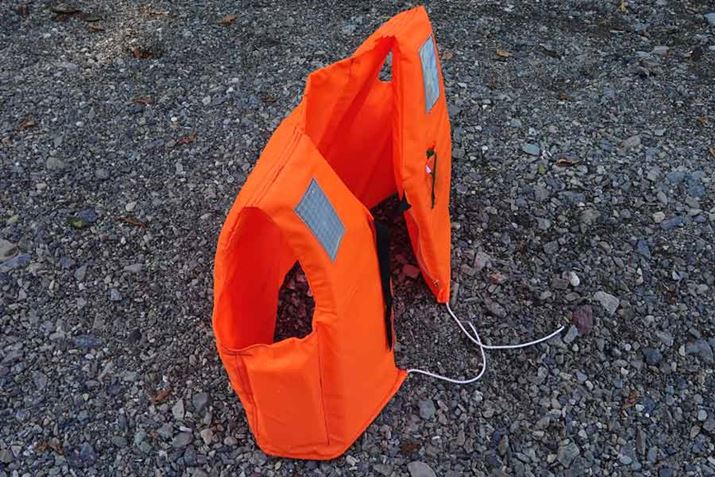 同じ状況で、空気でふくらませて浮力を発揮するタイプのライフジャケットも試してみました