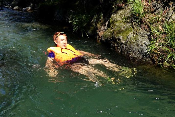 試しに全身の力を完全に抜いて、水の流れに身をゆだねても、身体はおおむね垂直した状態が保持されました。一次的に気を失ったりしても、そのまま溺れる可能性は低いのではないかと感じました。