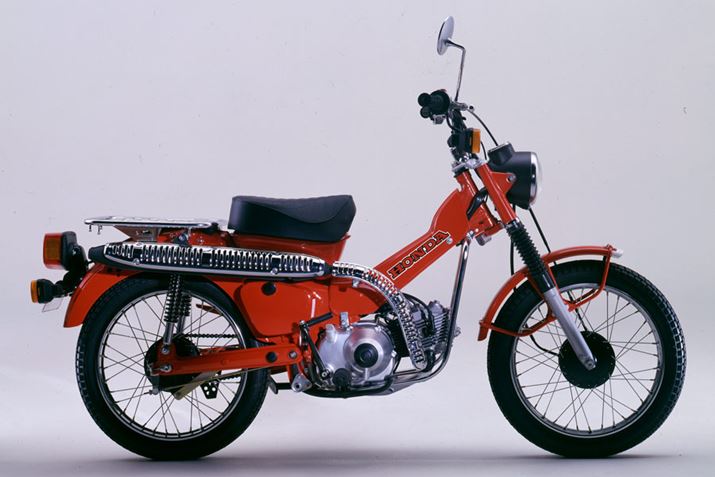ルーツであるスーパーカブの雰囲気が色濃く残る「ホンダ CT50」。「スーパートルク」と呼ばれる副変速機を搭載し、49ccの排気量ながら強力な登坂能力を誇った