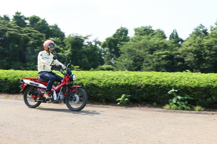 プロトタイプを目にした時から大きな期待を抱いていたモデルだが、実際に乗ってみると、期待を大きく上回る楽しさだった。走り出した瞬間から、より鼓動感を増したエンジンは気持ちよく、急がされない特性ではあるものの交通の流れをリードするキャパシティも持っているので、目的地までストレスなく、むしろ楽しみながら移動できる。少しアップダウンがあるような田舎道は、このエンジンのおいしいところをもっとも感じられるシーンだが、こうした道はおそらく日本全国にたくさんあるので、特別な場所に出かけなくても比較的近場でCT125・ハンターカブの魅力を堪能することができるだろう。