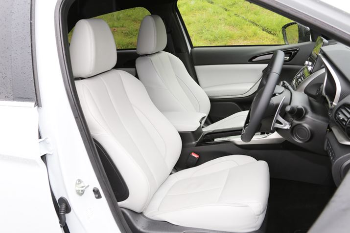 新型「エクリプスクロス」のフロントシートと、リアシート [ライトグレーの本革シート仕様]