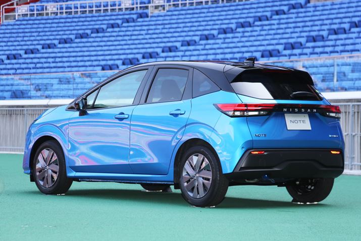 上が日産 新型「ノート」で、下が日産「アリア」のリアエクステリア