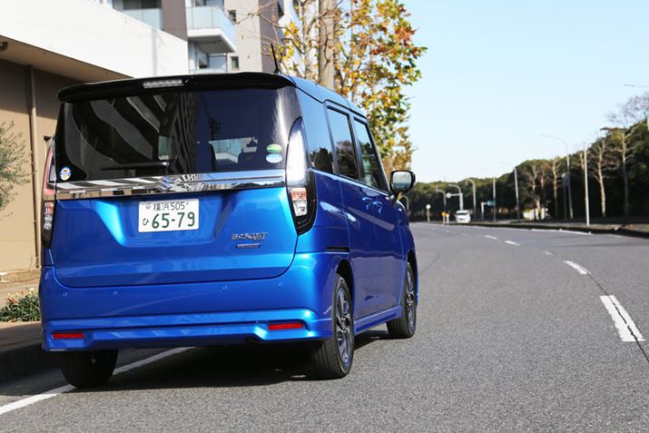 では、新型ソリオに試乗してみよう。乗り始めてすぐに、ソリオの狭い市街地や駐車場での扱いやすさを改めて実感した。全幅は先代よりも20mm広いが、ドアミラーの外側で測った実質的な車幅は同じなので、狭い裏道などでのすれ違いも容易だ。また、水平基調のボディはサイドウィンドウの下端が低く抑えられているので、前後左右ともに視界がいい。