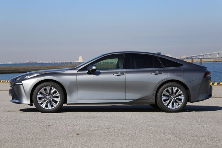 2020年12月9日にフルモデルチェンジされた、トヨタの燃料電池車(FCV)「MIRAI」。先代に比べて、スタイリッシュな外観へ変更されたほか、最新のFRプラットフォーム「GA-L」が新たに採用されている。プラットフォームに合わせて、駆動方式も前輪駆動から後輪駆動へと変更されており、FCシステムが最適に配置されているために前後重量バランスがよく、走りがいいことも特徴のひとつとなっている