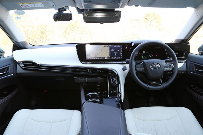 今回、試乗した新型MIRAIのグレードは、ベースグレード「G」の「Aパッケージ」だ。試乗すると、まず加速がとても静かで、滑らかなことに気付く。基本的な運転の感覚は電気自動車と同じなのだが、プラットフォームがLSやクラウンと共通で、遮音も入念に行われていることから新型MIRAIの走りはとても上質に感じる。