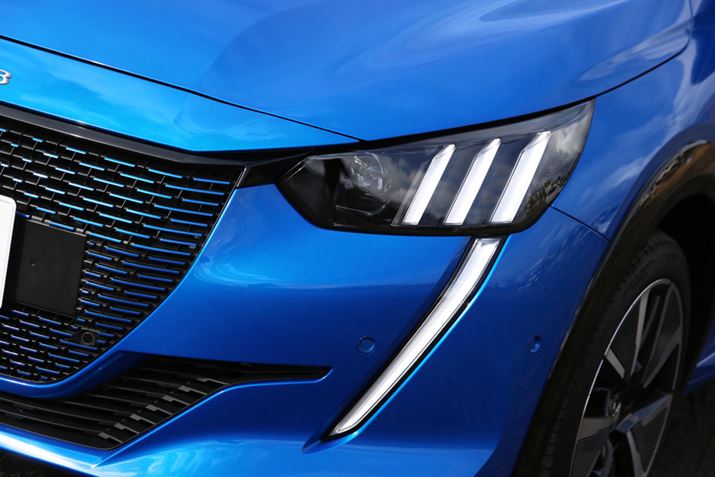新型「e-208」のヘッドライトやテールランプのデザインには、ライオンの三本爪のモチーフが採用されている
