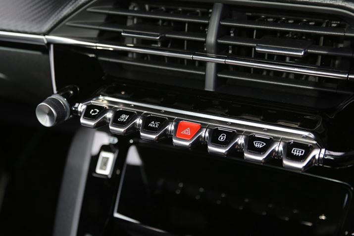 小径ステアリングは「3D i-Cockpit」の特徴のひとつで、操作時の動きを最小限に抑えるとともに、俊敏なレスポンスを可能にしているという