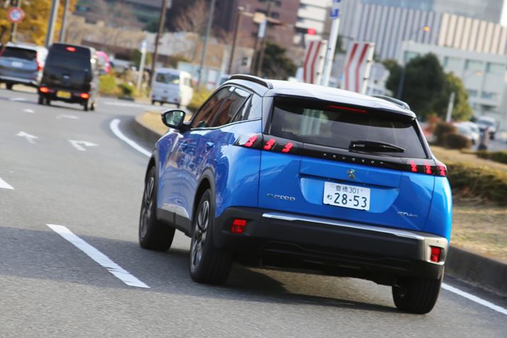 今回は、e-208に続けて乗り比べることができたので、2台の差を記すと、e-2008の乗り心地はe-208と同様に、若干硬めながら非常にスムーズだった。しかし、若干フラットライド感、安定性はわずかに劣っている印象を受ける。具体的には、高速道路などで段差を超えると、若干サスペンションがバタつくのだが、多くのユーザーにとってこれは誤差の範囲内だろうし、しばらくすれば慣れてしまうものだろう。ただし、コーナーリングにおいては、やはり上屋が重いため、e-208よりもワンテンポ遅れて動くイメージはぬぐえなかった。