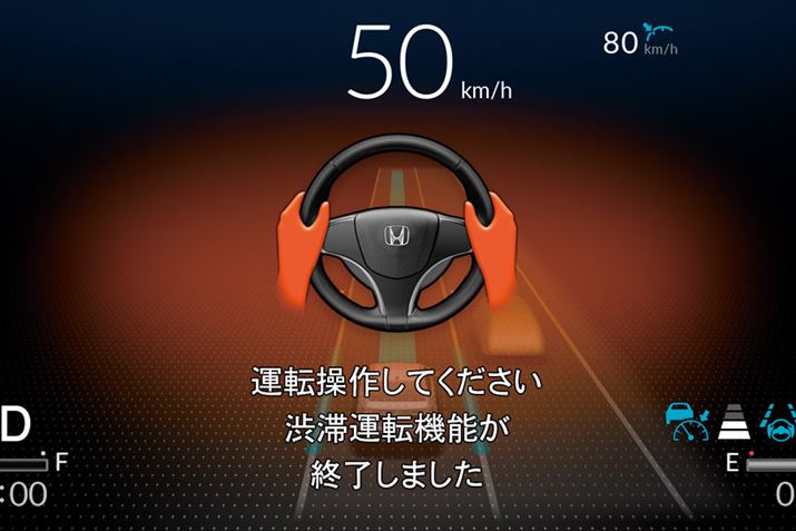 このように、Honda SENSING Eliteで高速道路を通常速度で走るときには、ハンズオフによる運転支援を受けられる。そして、時速30km以下の渋滞になるとトラフィックジャムパイロットが作動し、前方を注視する必要のないアイズオフになる。渋滞時のドライバーへの負担は大幅に軽減されるだろう。だが、前述のとおりシステムがドライバーに操作要求をしてくることを想定して、常に応じられる準備をしておくことは不可欠だ。インパネのモニターで映像などを視聴することは可能でも、そこに没頭すると反応が遅れる。その意味では、実際の使い勝手は運転支援機能に近いものと言える。