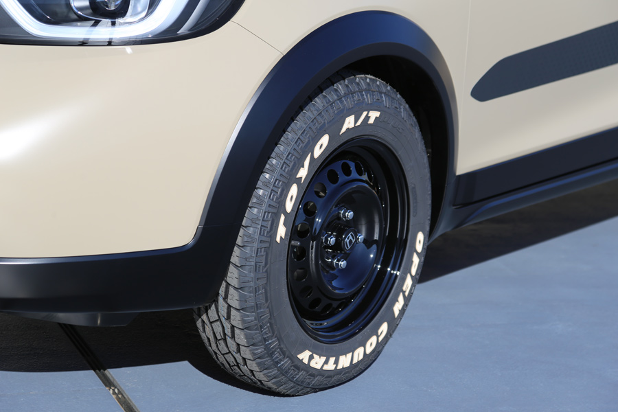 では、具体的にはどのように仕上げていったのだろうか。山アさんによると、「機能部品を、きちんと見せるようにデザインしました」と言う。ボディのデザイン面はシンプルに作り上げ、その代わりに強調されたフェンダーアーチや大径タイヤの採用、ルーフボックスの積載などによって、アウトドアのイメージを強めている。