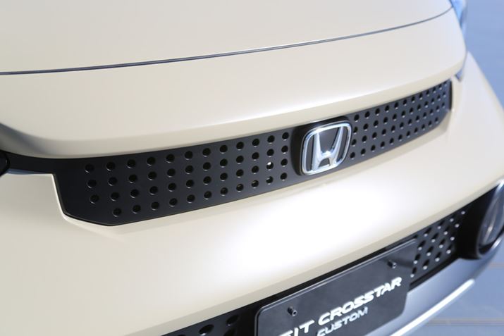 フィット e:HEV クロスターカスタムのデザインを担当した、本田技術研究所 デザインセンター オートモービルデザイン開発室 プロダクトデザインスタジオ デザイナーの山ア崇弘さんによると、「若い人が、おしゃれに乗ってもらいたいという思いで、気張らずにデザインしました」と言う。「今の若い人には、『THEクルマ』といったギンギンにカスタムされたクルマよりも、標準仕様なのではないかというくらいにまとまっていて、クルマがファッションの一部ぐらいのカスタムが好まれているようです」と説明する。