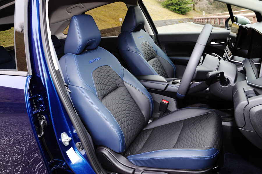 エクステリアにおいても、それは同様だ。「オーロラフレアブルーパール」と呼ばれるボディカラーは、「スカイライン」などにも採用されている特別色で、ノート AUTECHに落ち着いた印象が与えられている。さらに、専用ホイールもボディ下端のシルバーの加飾とともに、全体を引き締めている。フロントに埋め込まれた、ブルーの専用シグネチャーLEDだけは少々やり過ぎな感もあるが、それ以外は上質かつスポーティーな印象が与えられているエクステリアと言えるだろう。