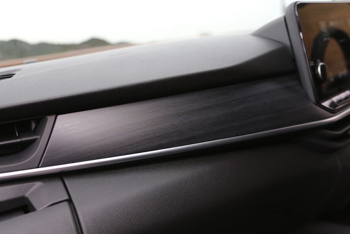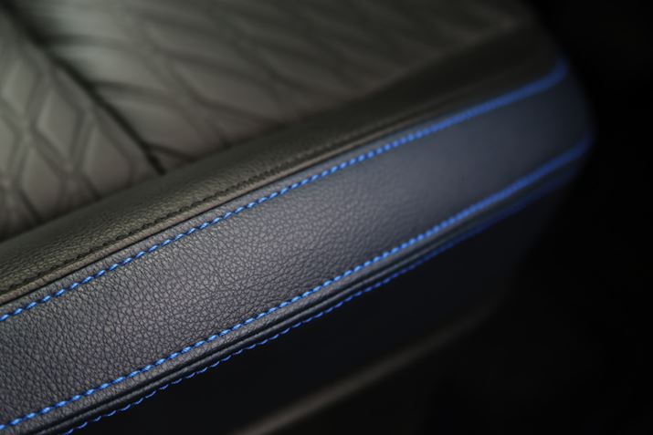 次は、“海の仕立て”だ。シートのキルティング部分や、メイン材のエンボス部分などに、波のイメージが表現されているという。「広がる波のような、ダイナミックなリズムを表現したいと思い、リズミカルな波のパターンを入れるために、凹凸や影などを調整しています。リズム感が生まれ、シートに座った瞬間からその世界が広がっていくような、躍動感を表現しました」と話す。