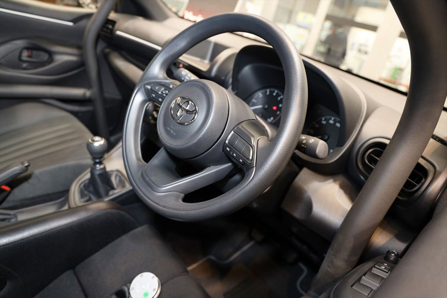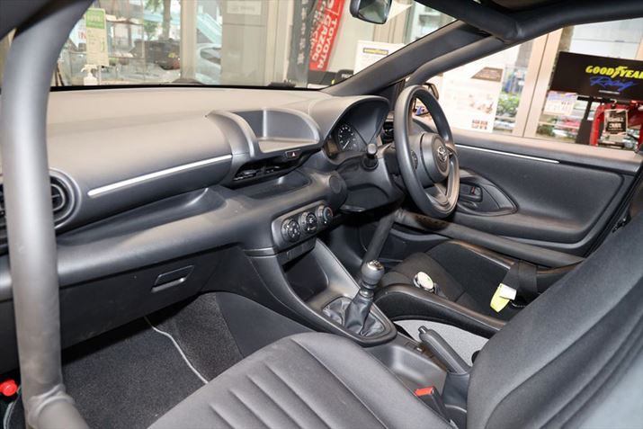 「ヤリスカップカー」のステアリングやメーターは、純正と同等のものが装着されています