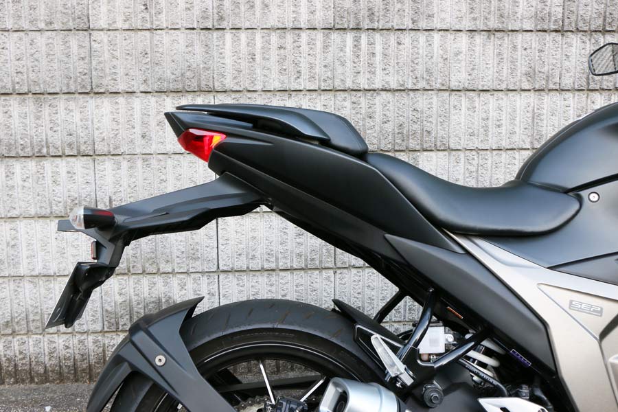 テールカウルも斜めに切り上がったシャープな造形。ストリートファイター系カスタムでよく見られたものだ