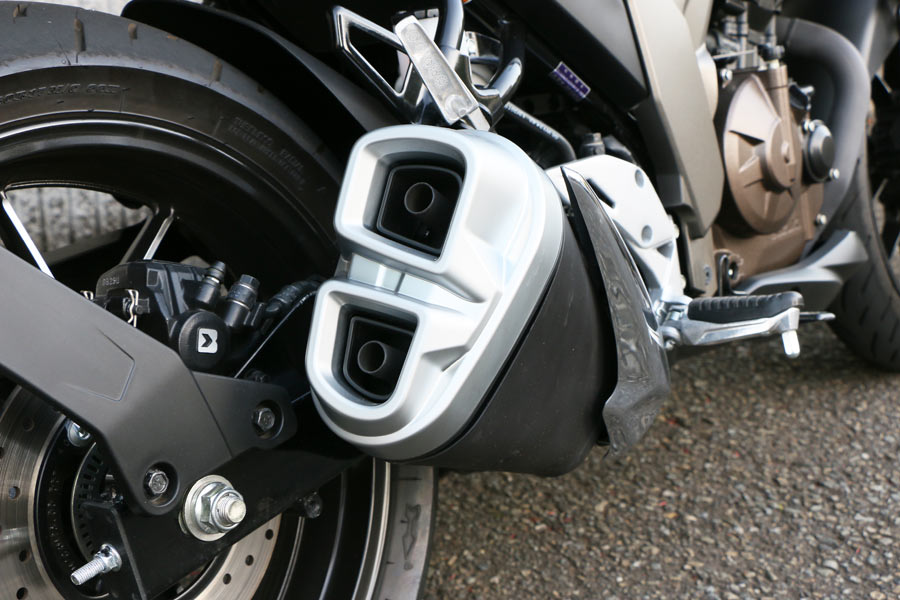 排気口が縦に2つ並ぶマフラーは迫力がある