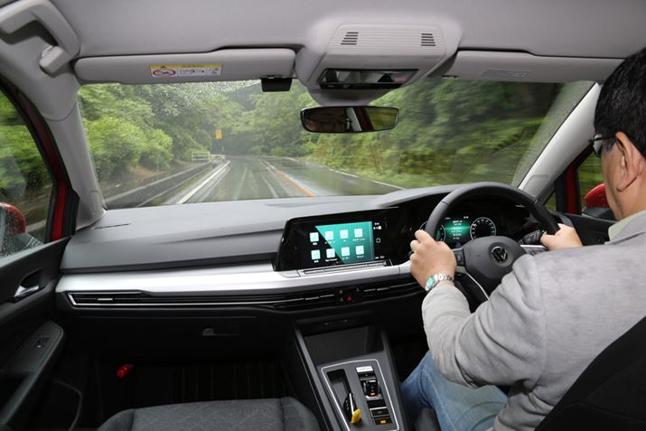 安全装備は、基本的に先代と同じで衝突被害軽減ブレーキを筆頭に充実している。車間距離を自動制御できるクルーズコントロールなど、運転支援機能も備わる。そのうえで、新型ゴルフでは運転支援機能のステアリング制御が進化している。先代では時速60km以下で対応していたのだが、新型では高速域でも作動するようになった。さらに、ドライバーが意識を失うなど、運転が困難な状態に陥ったと判断された時には、ハザードランプを点滅させてホーンを鳴らしながら同一車線上で自動で停止。自動的に電動パーキングブレーキを作動させ、ドアロックは解除して救出を容易にする機能も備わっている。