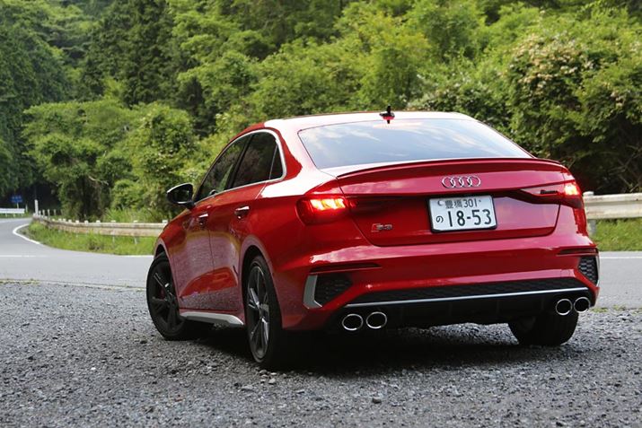 次に、新型S3のセダンに試乗した。2L直列4気筒ターボエンジンは、最高出力が228kW(310PS)/5,450-6,500rpm、最大トルクは400Nm(40.8kg-m)/2,000-5,450rpmと力強い。発進直後の1,300rpm付近で、すでに過給効果が感じられ、踏み込めば速度は直線的に高まっていく。4,000rpmを超える領域の吹け上がりもすばらしく、6気筒エンジンに似た印象も受ける。