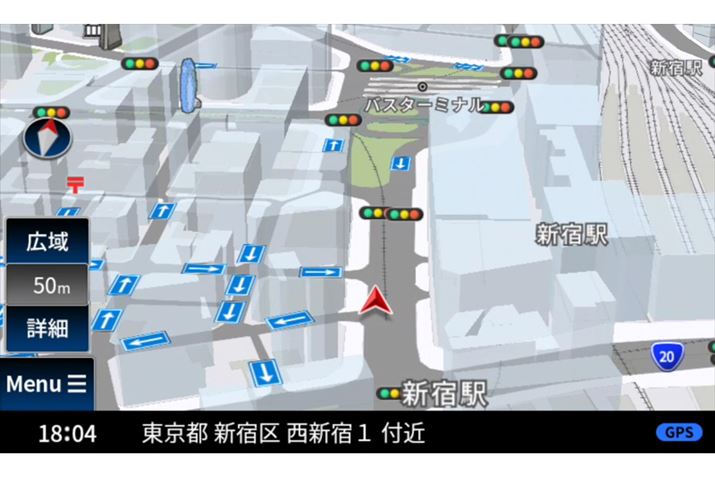 そのほか、50mスケールの詳細な市街地地図の表示などに対応していたり、方向看板の表示や都市部の複雑な交差点におけるリアルな3Dの交差点イラスト表示、高速道路のジャンクションガイドなど、便利な案内や表示機能についても、しっかりと搭載されている。