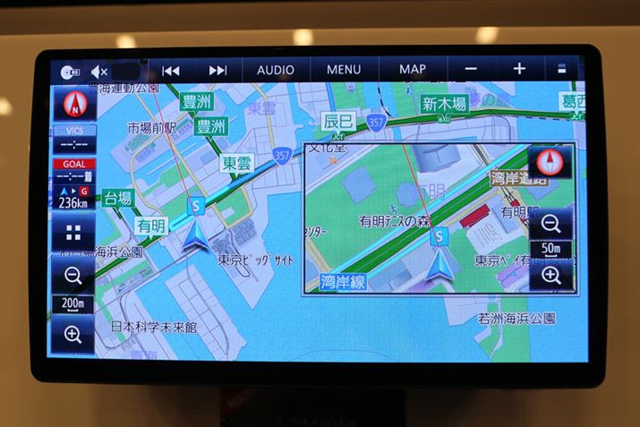また、今回は実機で確認できなかったのだが、自車位置の捕捉精度も向上しているという。たとえば、立体駐車場を走行している時や枝分かれしていて高低差のある陸橋など、自車位置ずれが起こりやすいような場所でも、ロケーションシステムの精度を向上させることによって、正確な自車位置によるルート案内ができるようになっているという。