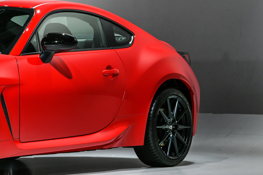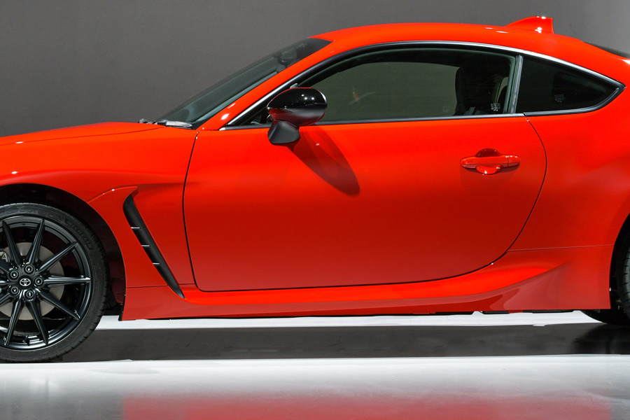 次に、“機能美”において大きく貢献しているのは、左右のフェンダーへ新たに備えられた「エアアウトレット」だ。操安性に大きな効果をもたらしてくれるエアアウトレットを、機能だけでなく「造形としても、しっかりと表現しています」と言う。そして、そこからサイドシルスポイラーへの流れがデザインされた。ちなみに、先代の「86」でもわずかではあるがサイドシルスポイラーへの流れは見て取れるので、新型ではそれがより強調されたとも言えそうだ。