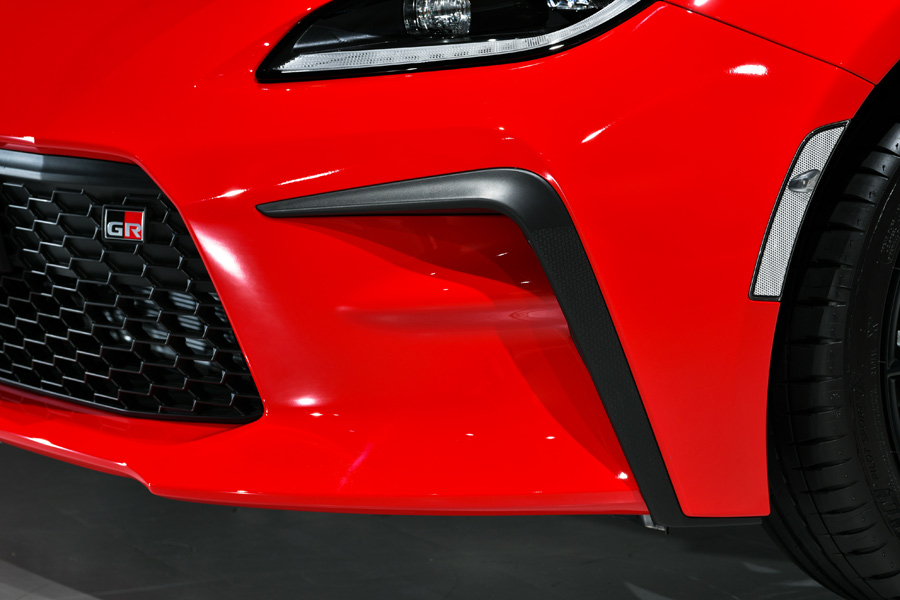 さらに、インレットダクトの外側側面には、「空力シボ」が施された。これによって、側面の空気の流れをコントロールしているという。この空力シボは、GR 86は水平でBRZは約20度傾いており、それによってGR86はより機敏な動きを、BRZは素直な扱いやすさを実現しているという。